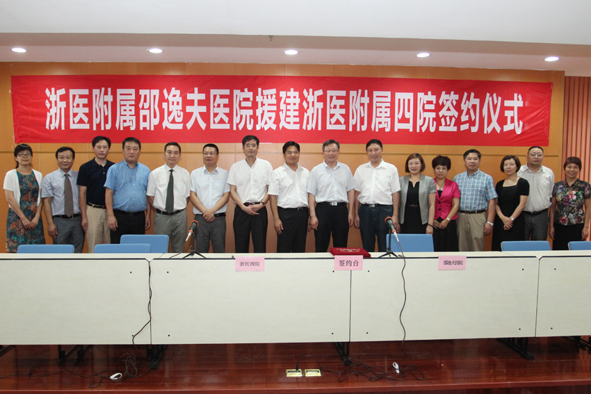 2014年9月底,浙江大学医学院附属第四医院将投入运行,位于浙江义乌的浙医四院,是浙江大学首次在异地建设的综合性附属医院。作为国内首家异地办院的附属医院,浙江大学对四院的发展极为重视,提出建设高起点、高标准、高水平的工作要求,并要求在杭的6家附属医院对四院的建设给予鼎力支持与帮助。邵逸夫医院积极响应浙江大学的号召,早在2009年就先后派出13名管理经验丰富的行政、医疗骨干参与四院早期建设,成为援建最早、派员最多、支持力度最大的援建团队。9月10日,浙江大学医学院附属邵逸夫医院与浙医四院在义乌举行学科援建签约仪式,标志着两院为期5年的基础援建工作取得了阶段性成果,“邵医模式”成功嫁接到四院,援建工作从医院管理向学科建设的全面铺开。