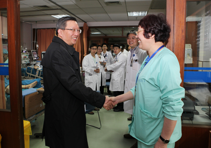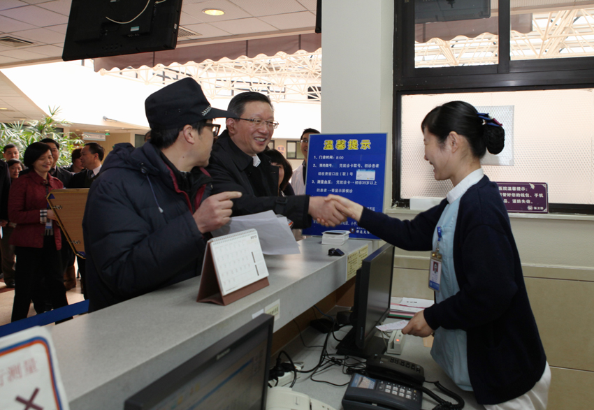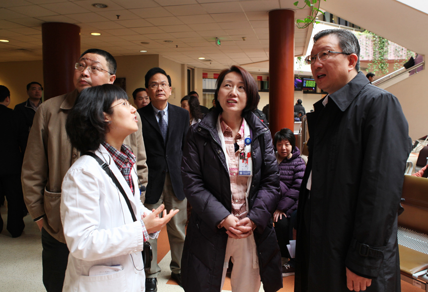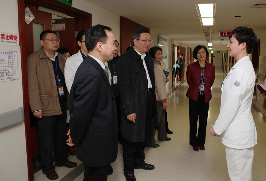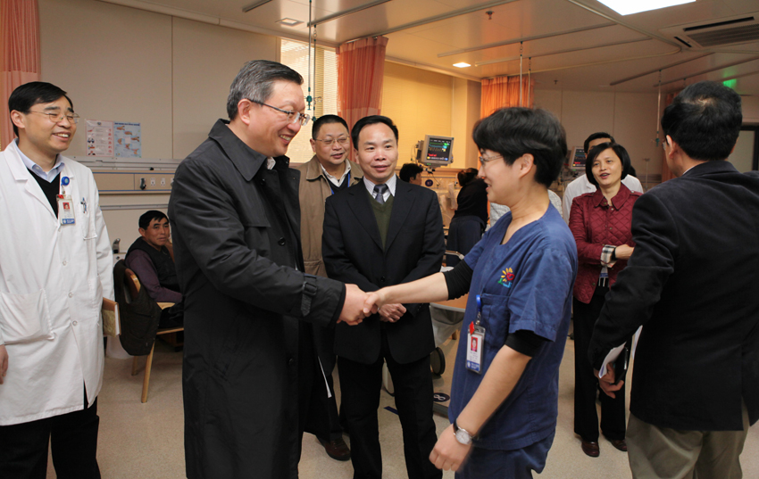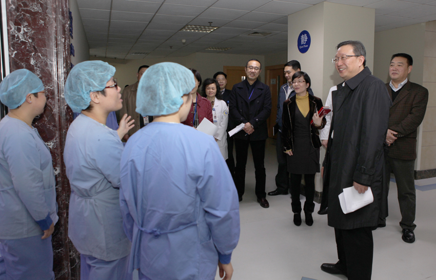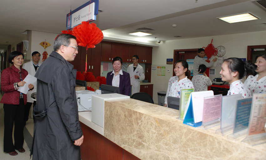 2014年1月29日上午,蔡秀军院长等院领导携同行政职能科室负责人一行17人进行了春节前夕的行政大查房。节假日期间的首要任务当属消防安全,第一站的检查部门就是消控中心,蔡院长一行查看消控中心设施,询问了当班员工平时的工作情况,感谢他们节假日坚守岗位为保障医院的安全所做出的努力;之后蔡院长一行又来到了急诊、EICU、手术室、ICU、门诊、出入院处、入院准备中心,了解收治病人的情况,询问各部门春节期间的工作安排,关心员工的假日出行状况。蔡院长一行还巡视了高配间、后勤库房、临工科库房、病理档案室、冷冻机房和锅炉房,对后勤部门的工作状态表示满意。最后蔡院长一行查看住院病房,慰问坚守岗位的医护人员、看望住院病人。