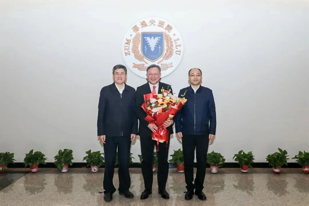 11月21日,浙江大学党委书记任少波、校长马琰铭一行来到浙江大学医学院附属邵逸夫医院,亲切看望新当选中国科学院院士的蔡秀军教授,向他致以热烈祝贺并送上鲜花。浙江大学党委副书记傅强,党委常委、副校长李晓明陪同看望。