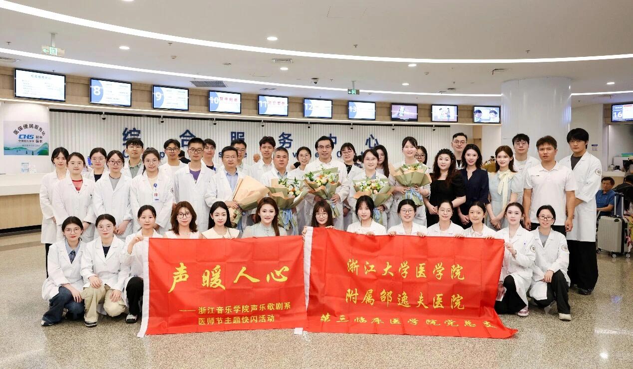 2025年8月19日,以“德馨于行,技精于勤”为主题的第八个中国医师节如期而至。在浙江大学医学院附属邵逸夫医院庆春院区门诊大厅,一场由医院第三临床医学院外科学第一党支部与浙江音乐学院声乐歌剧系研究生党支部共同策划的音乐快闪,以温暖而特别的方式,奏响了献给全体医师的节日赞歌。