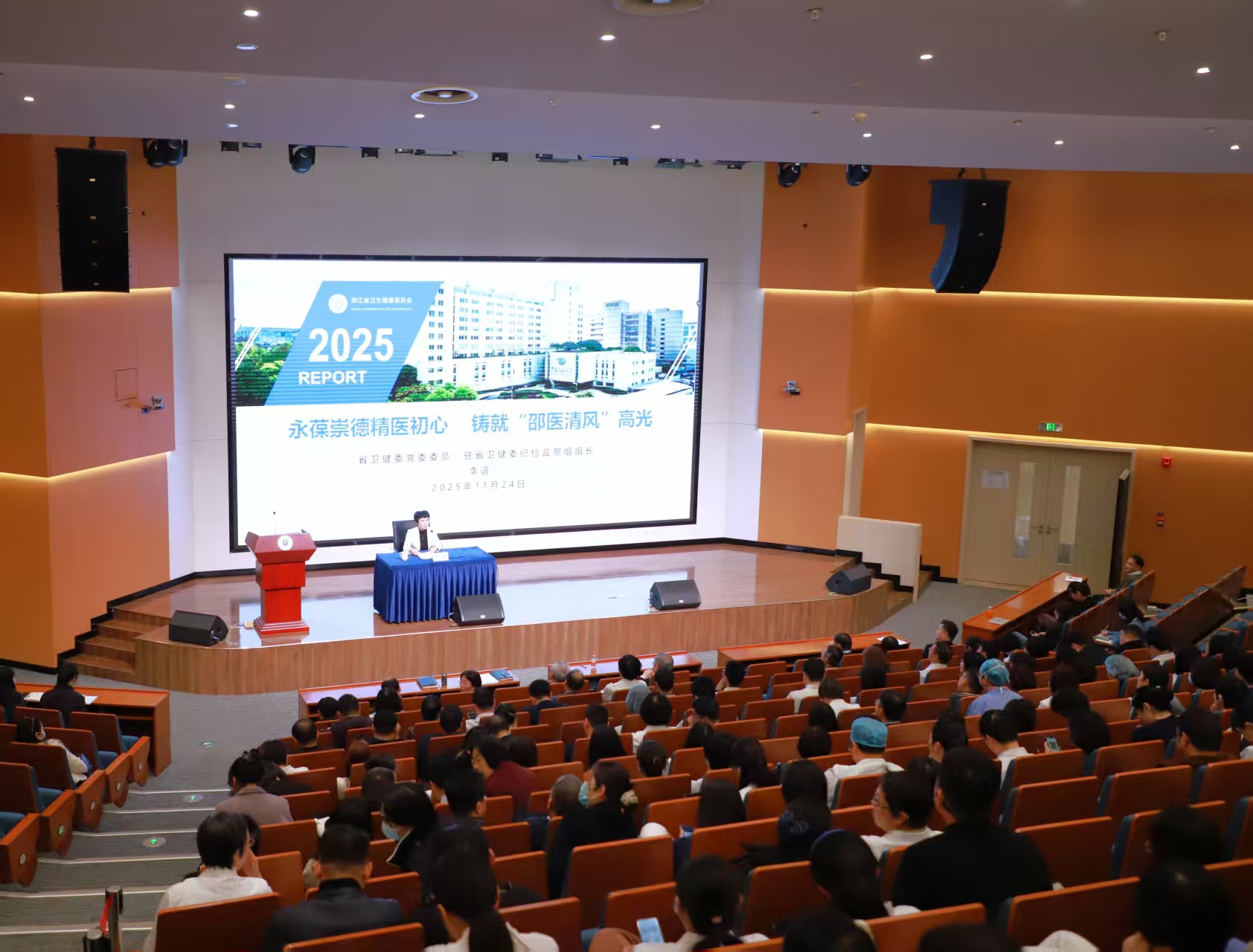 为深入推进清廉医院建设,筑牢干部职工廉洁自律思想防线,2025年11月25日,浙江大学医学院附属邵逸夫医院特邀省卫健委党委委员、省纪委省监委驻委纪检监察组李谙组长来院作主题为“永葆崇德精医初心,铸就邵医清风高光”的廉政专题讲座。会议采用多院区联动形式,在庆春院区设立主会场,并于其他院区同步设立视频分会场。