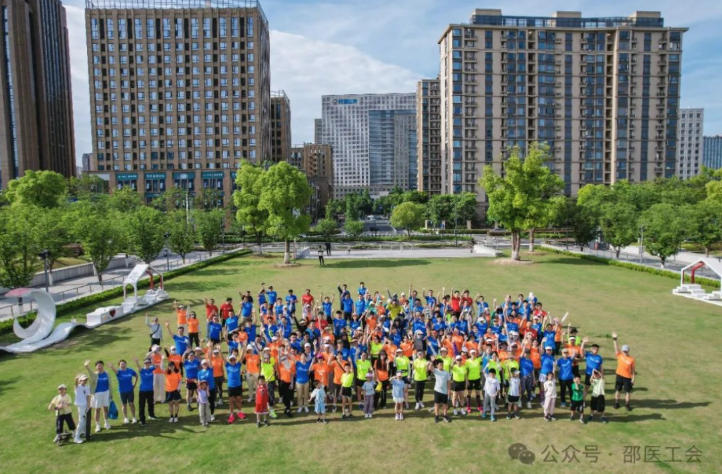 2024年5月26日上午7点30分,百余位“邵跑跑”在金沙湖公园热身场地集合,准备开启本年度的邵医跑团春季环湖跑活动。